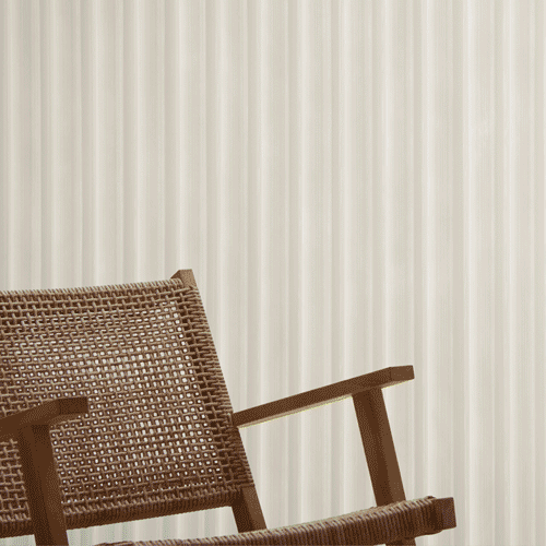 Luminette® Privacy Sheers are a unique type of vertical sheer shade. Similar to the look of ripplefold drapery, the sheer fabrics are curved at the top and travel back and forth across the window on a specialized track to maintain the uniform curves. Inside the sheer curves, solid fabric vanes are placed vertically. These solid vanes can be rotated to close off outside light and increase interior privacy.