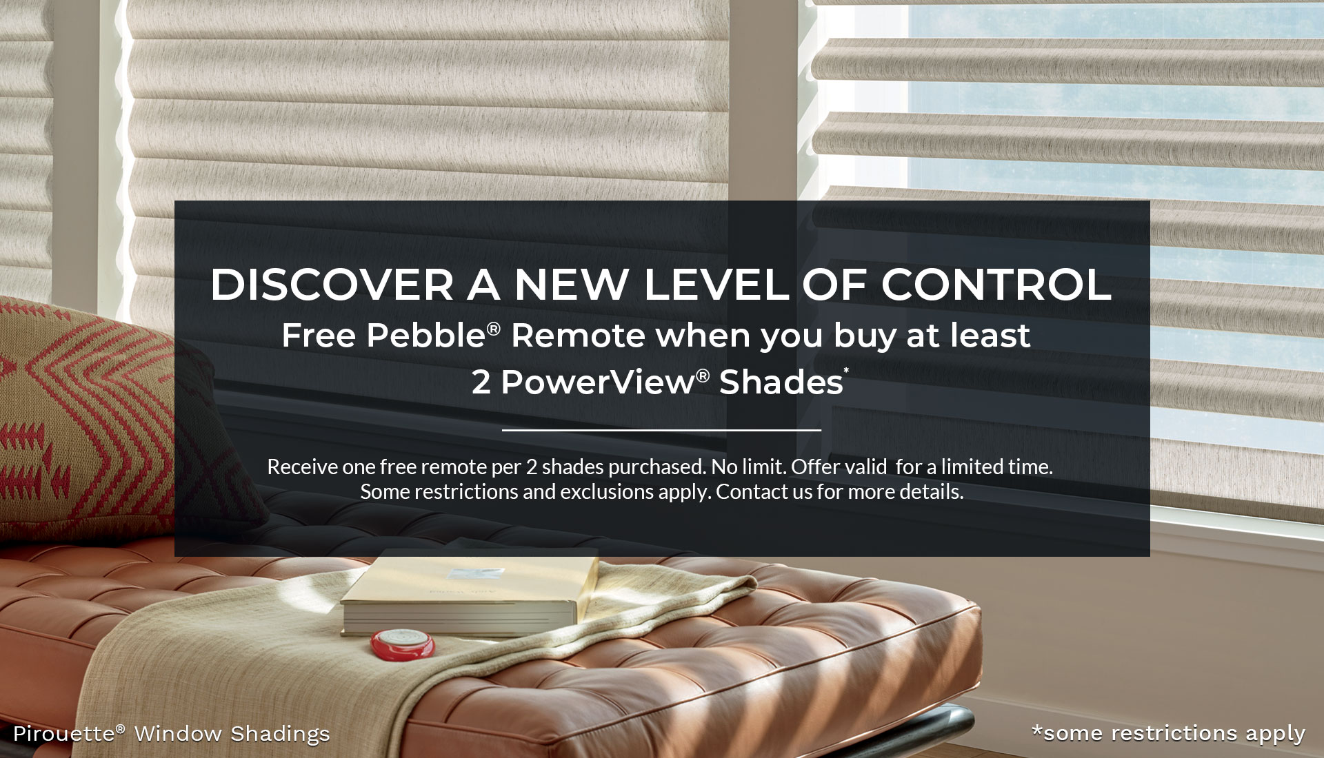 Promotions February 1st – March 31, 2026 Save $100 or more in rebates* when you purchase: 2 Vignette® Modern Roman Shades 4 Sonnette® Cellular Roller Shades *some restrictions apply Book A Consultation
